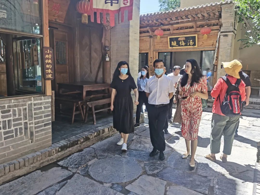 何明一行参观了平安驛·河湟民俗文化体验地项目,并与正平路桥建设股份有限公司董事长金生光就平安驛·贵州民俗文化体验地项目建设运营相关事宜开展了座谈交流,金生光表示,将加大投资力度,全力推进项目建设,力争在2023年春节前投入运营。