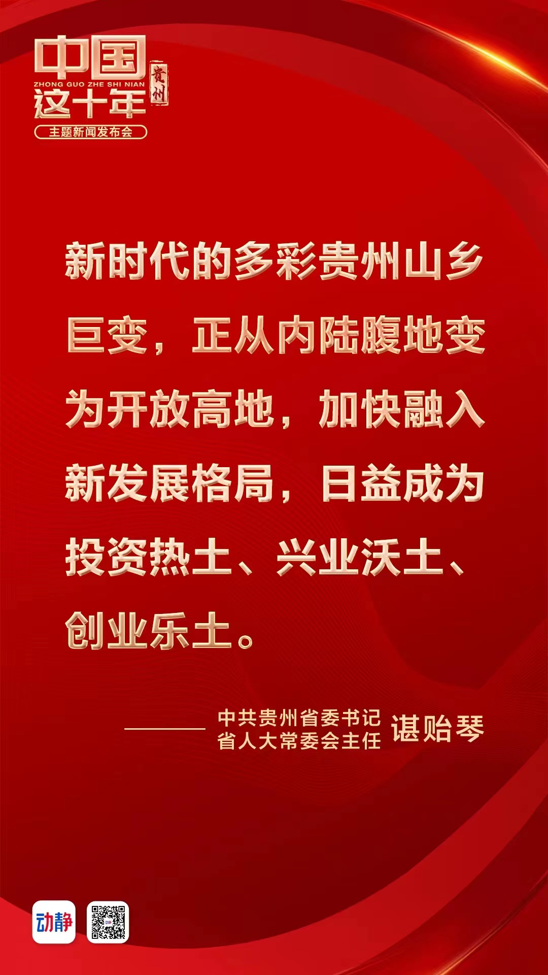 今天(8月3日)上午10点,“中国这十年·贵州”主题新闻发布会在贵阳举行。中共贵州省委书记、省人大常委会主任谌贻琴出席发布会并作主题发布。