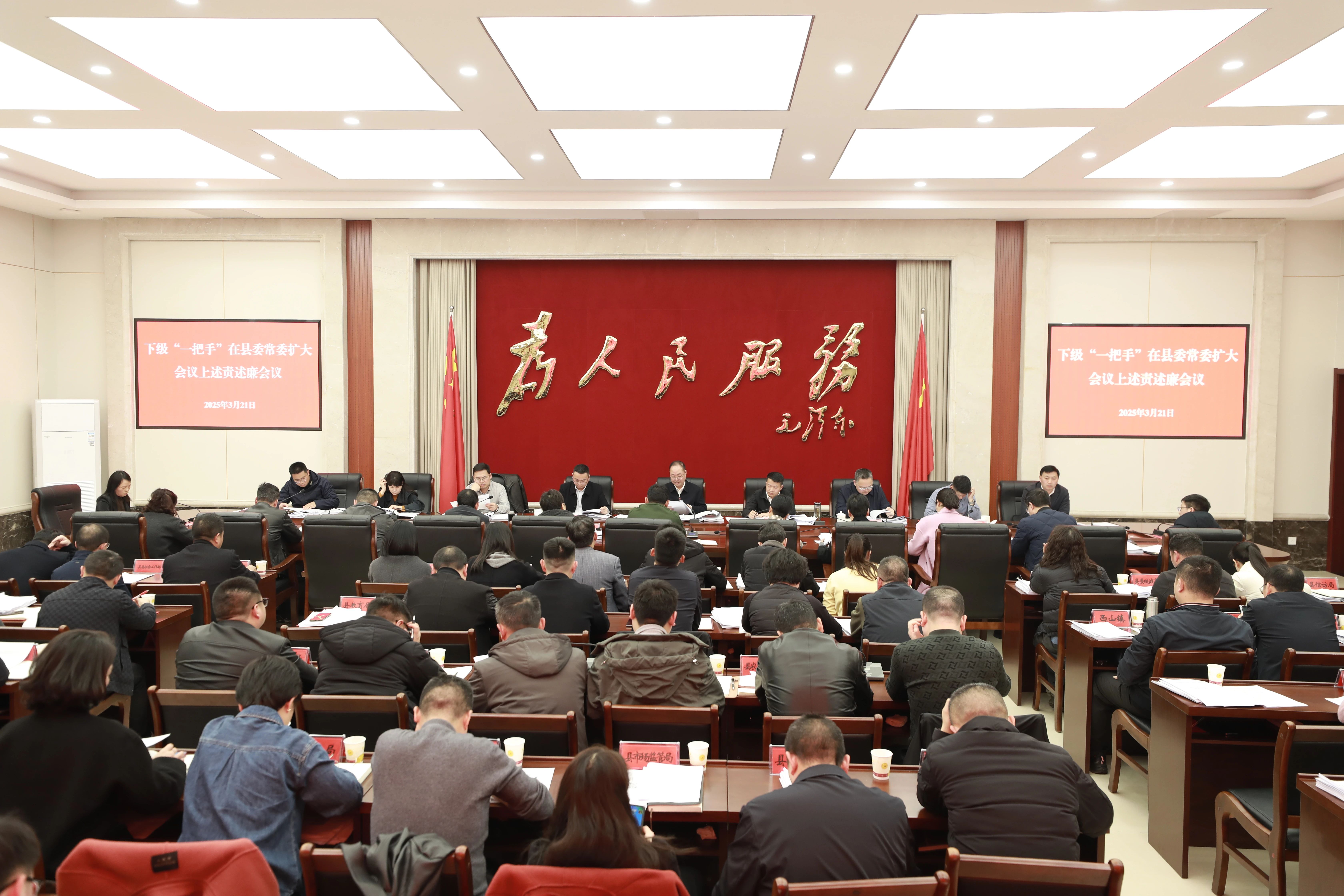 3月21日,县委常委会召开扩大会议,听取各乡(镇、街道)和县直各部门单位“一把手”述责述廉。县委书记李颖主持并讲话。
