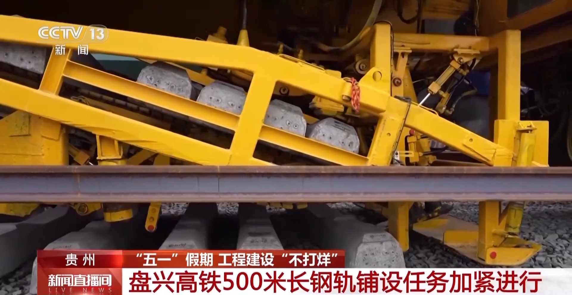 中铁一局盘兴高铁项目负责人 刘超红:“五一”期间,我们有500余名工人坚守在岗位上,确保五月份全线铺轨任务过半,为后期全线铺轨任务顺利完成打下坚实基础。
