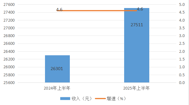 根据国家统计局贵阳调查队反馈数据,2025年上半年息烽县城镇常住居民人均可支配收入完成27511元,与2024年上半年相比,2025年上半年城镇常住居民人均可支配收入增加1210元,同比增长4.6%,与贵阳市持平。