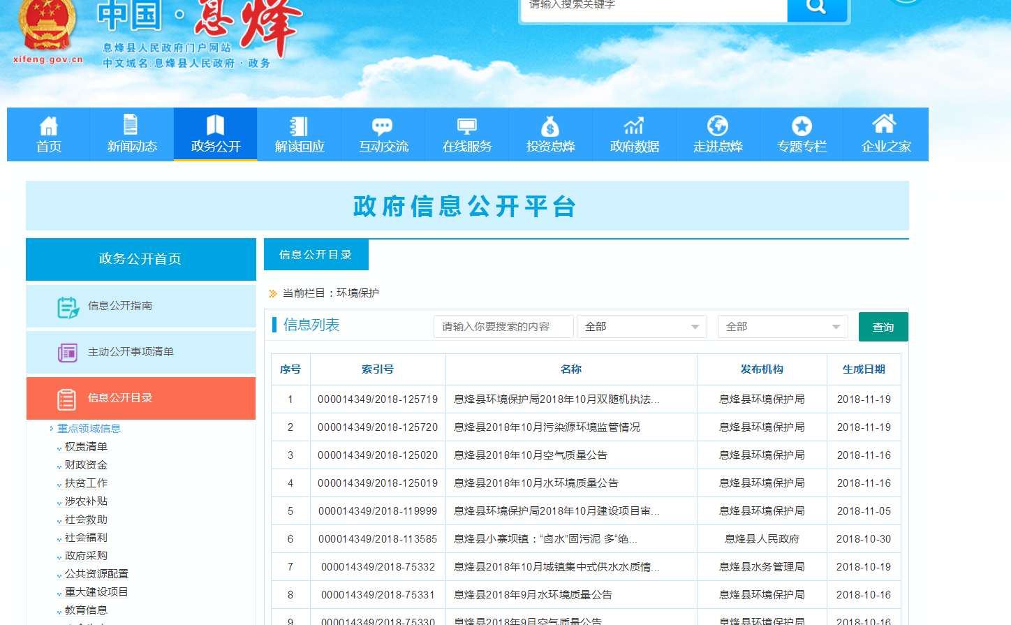 三是推进大生态信息公开。在县政府门户网站开设环境保护专栏,下设环境监测、环保执法、项目环评3个子栏目,公开大生态相关信息412条。