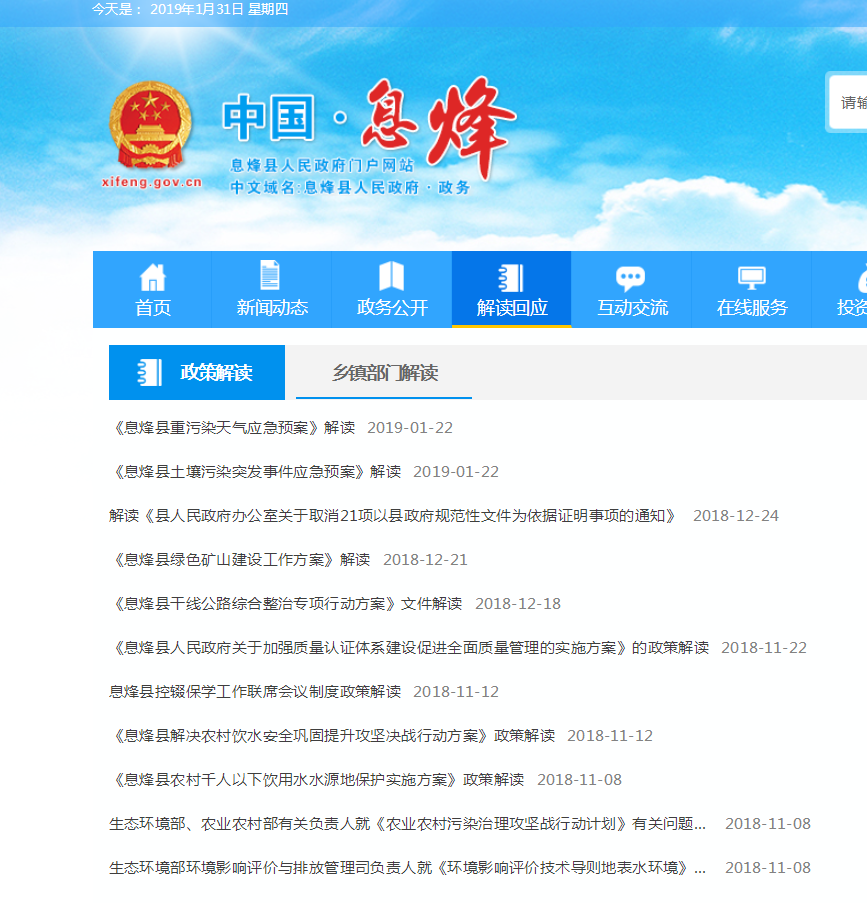 二是加大政策解读情况。建立健全政策解读制度,进一步明确政策解读责任、解读流程、解读内容、解读方式等。在县政府门户网站设置政策解读和乡镇部门政策解读两个栏目,规范政策解读发布,扩大政策解读面,2018年共发布政策解读稿件313条,其中县级政策解读141条,乡镇部门解读172条。县政府主要领导带头解读政策,2018年通过发表署名文章等方式开展政策解读2次。