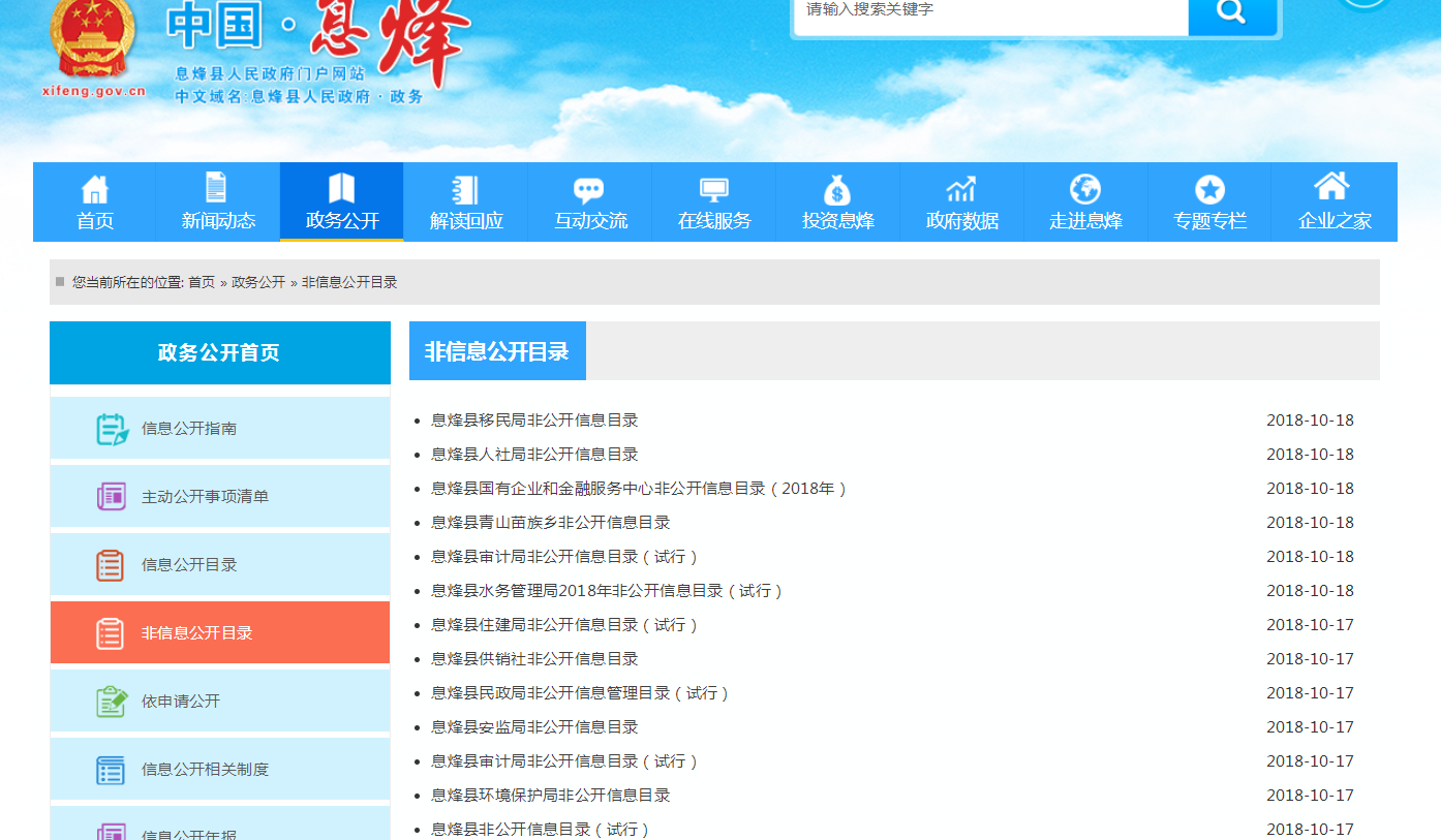 创新清单式管理推进政务公开,建立息烽县主动公开事项清单、信息公开目录、非公开信息目录,督促各单位比照建立,进一步厘清工作任务。注重在破解难题、政务服务、互动交流、舆情处置中推进政务公开,为群众提供更加便利的政务服务,舆情处置有力有效,政民互动渠道畅通,群众满意度不断提高。比如,通过设立息烽县招商引资项目代办服务中心,进一步优化政务服务,受到了企业的认可,2018年以来共为74个企业项目开展全程代办,代办事项351项,代办率和结办率均为100%。