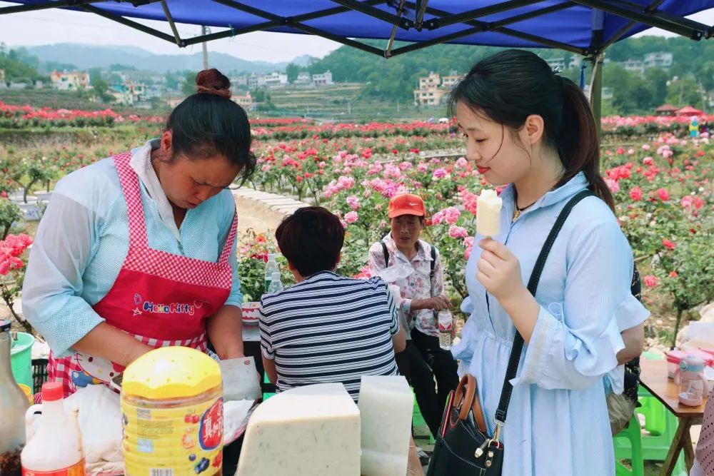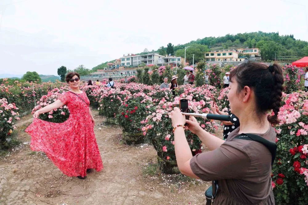 5月12日,息烽县西山镇文安花海景区,众多游客走进月季园,游览观赏五颜六色的月季花,有的俯下身子轻抚绽放的花儿,有的与同伴合影,有的给花儿拍照,记录这一幅幅美丽的画面。