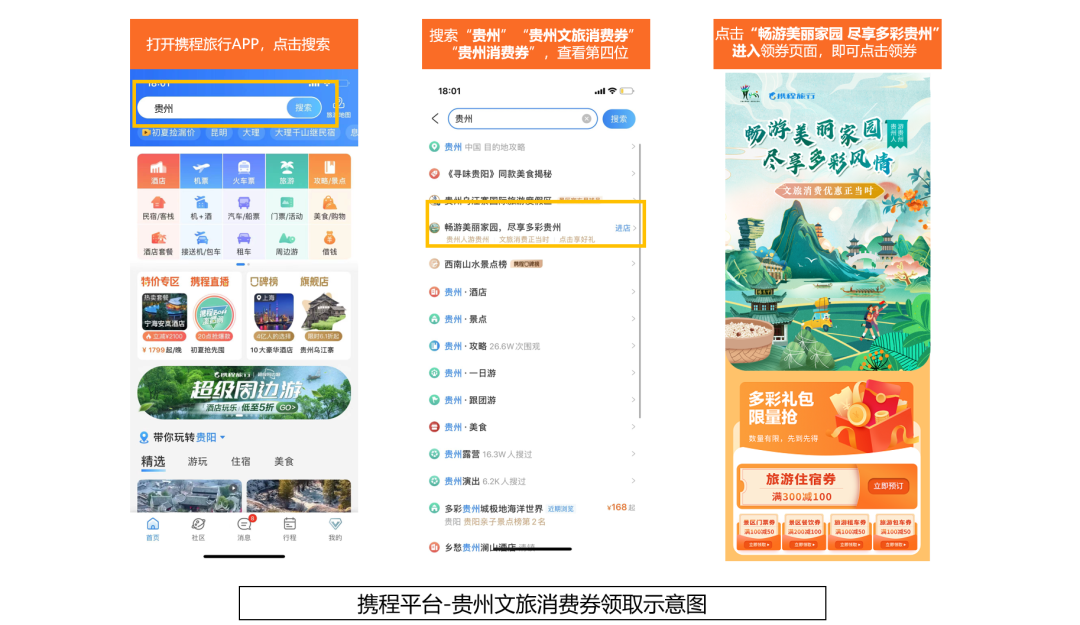 新一轮消费券发放活动参与商家更多,优惠力度更大,应用场景更为丰富,端午假期即将来临,计划出游的市民朋友,可使用文旅消费券提前在平台预定心仪的民宿和酒店,避开假日高峰,乐享文旅优惠。市民游客可通过通过微信搜索“贵州旅游·一码游贵州”小程序或携程旅行APP、携程旅行小程序参与抢券。