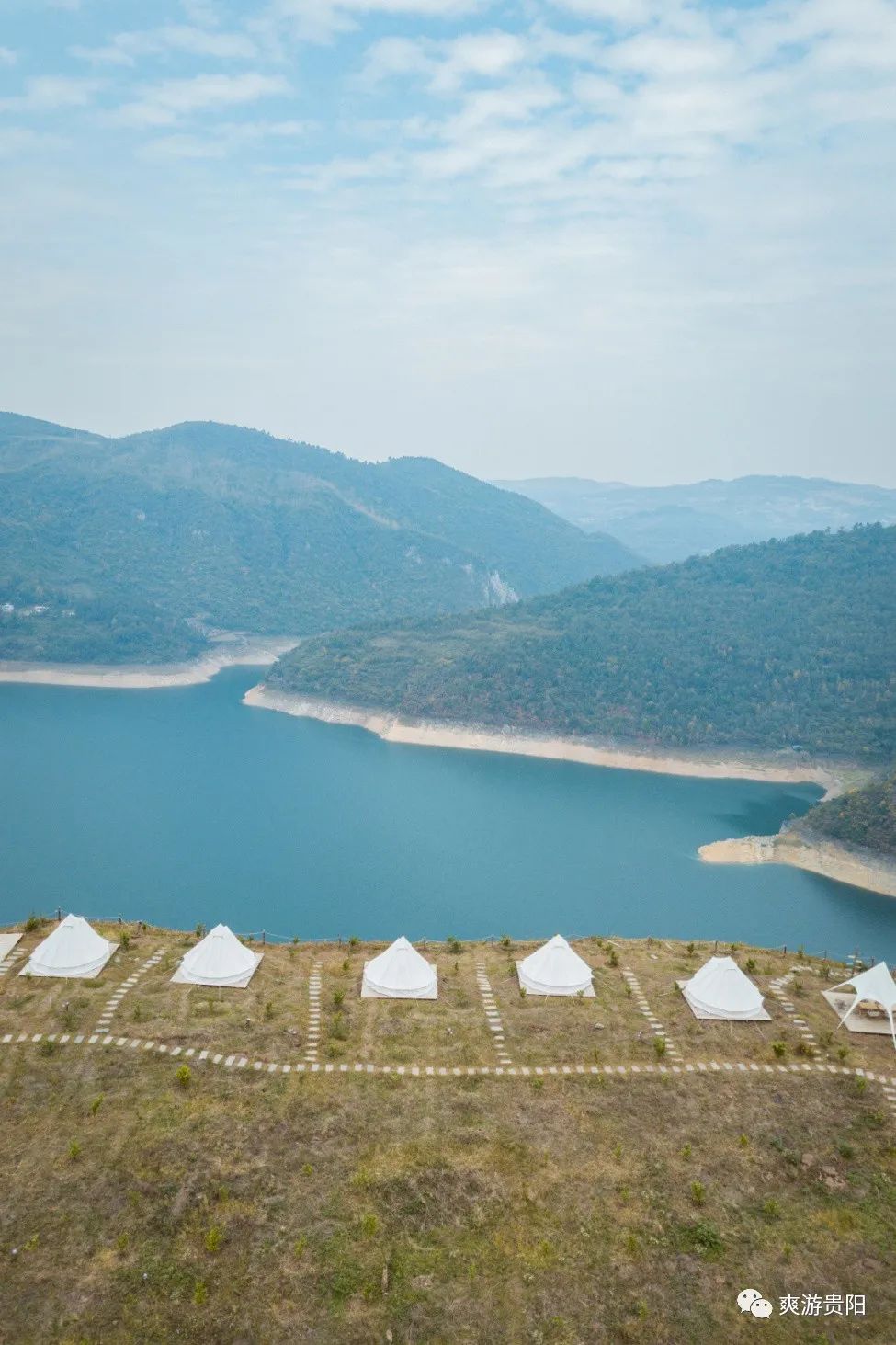 露营基地在最高处,一眼便能看到所有的风景。水碧绿,树常青,对岸山峦和乌江一直延绵到视野尽头。