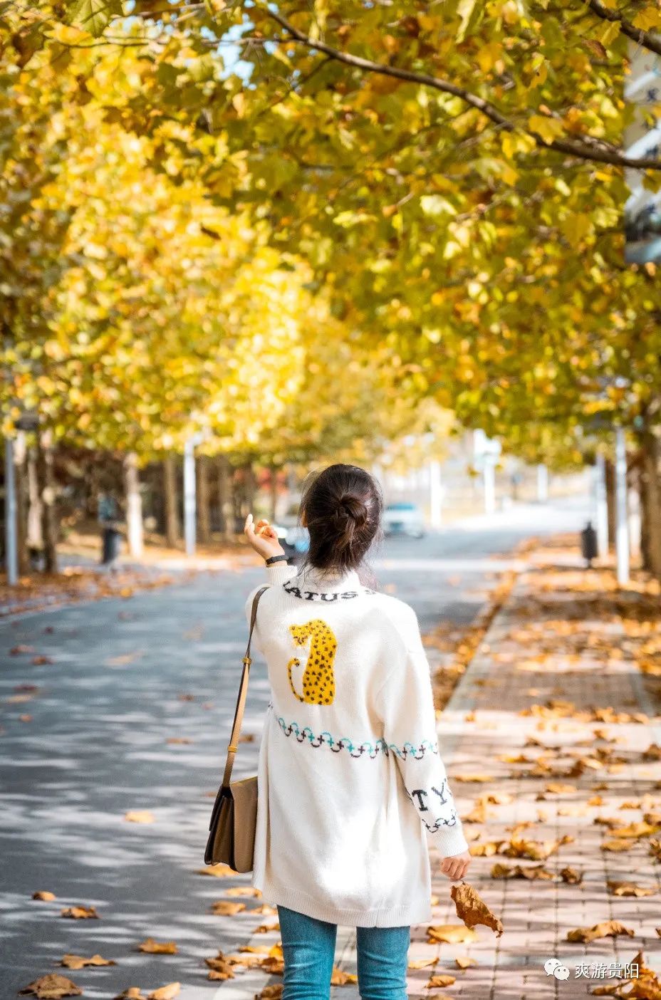 漫步向前走去,欣赏着这个季节最温柔的馈赠,脚下时不时踩到落叶发出沙沙的响声,此刻,宁静又美好。