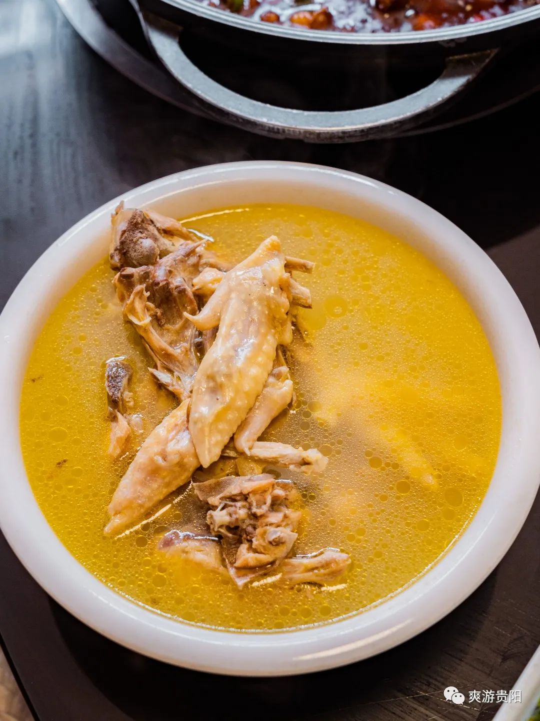 那就尝尝御堂饭庄的剔骨鸡,剔下来的鸡肉切成小块炒成香辣入味的火锅,而骨头用来熬制成汤。