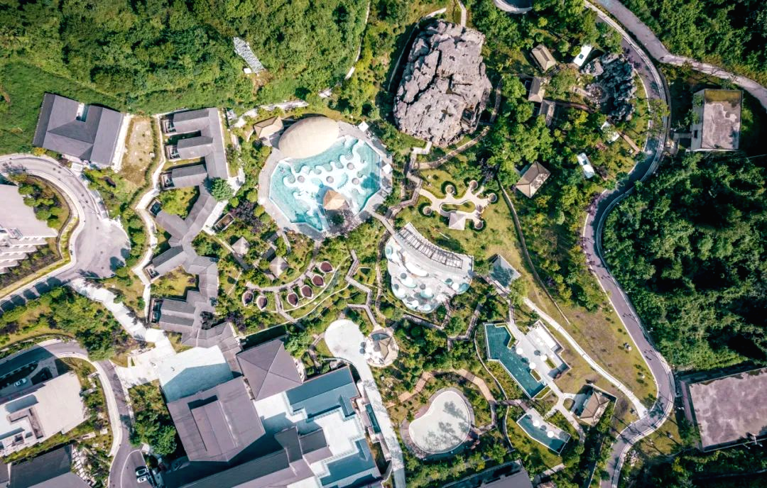 酒店呈环形状,周围绿树成荫、郁郁葱葱,空气清新、环境宜人。附带有餐饮、茶室、书吧等配套设施,酒店周边还可以体验温泉、丛林探险、卡丁车、乡村美景观光等。