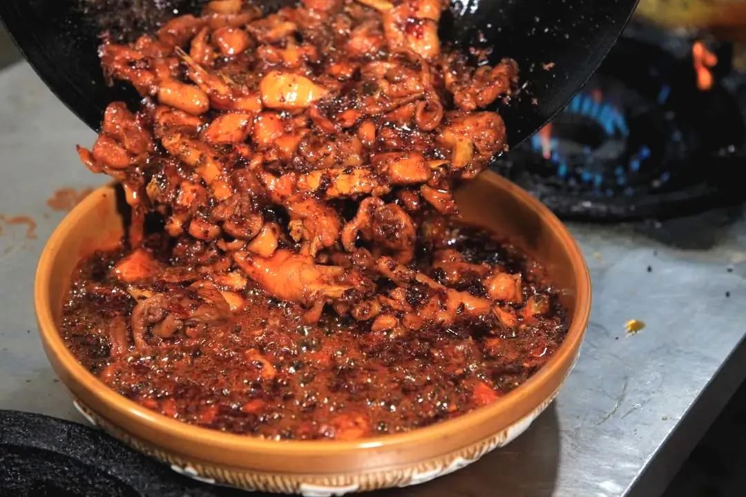 息烽的阳朗辣子鸡,是贵州辣子鸡中的佼佼者,一道独特的传统风味菜肴。油中爆炒、清汤中火焖鸡、喷淋酿酒、适时加入辣椒、翻炒至熟。又辣又糯,味香色美,地道的贵州味。