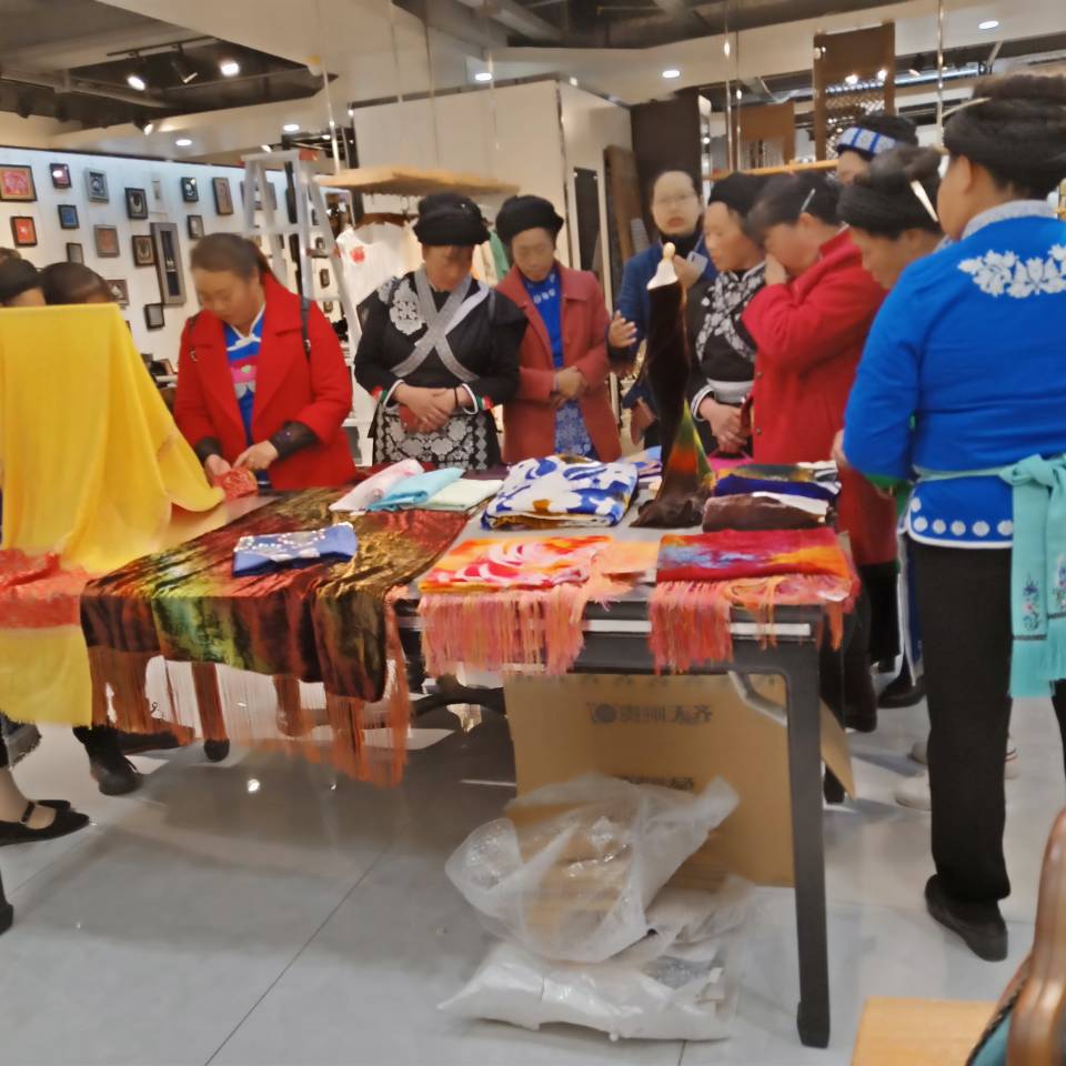 11月19日,黔粹行培训总监张丽丽的带领下,参观了黔粹行作品展示、了解手工艺品的市场需求、当地手工艺的特征、纹样运用实践等。