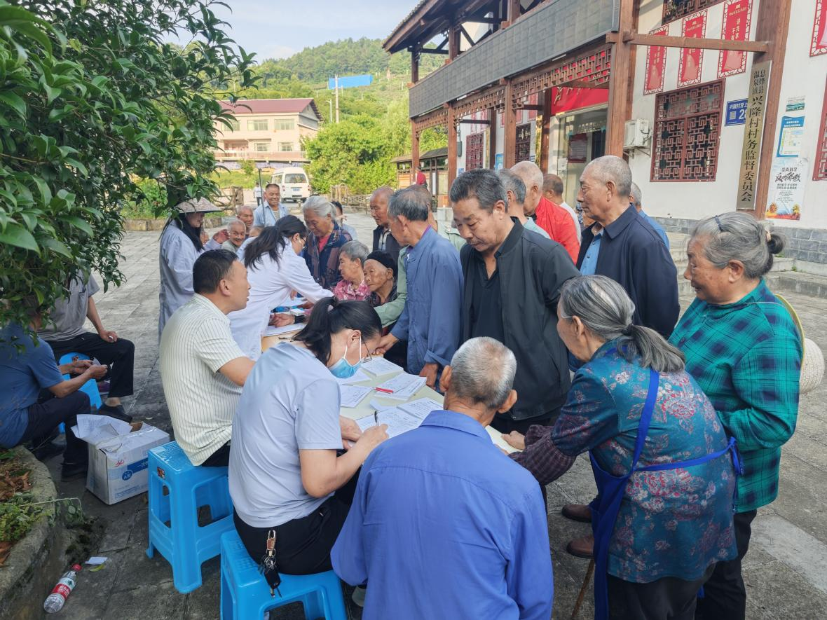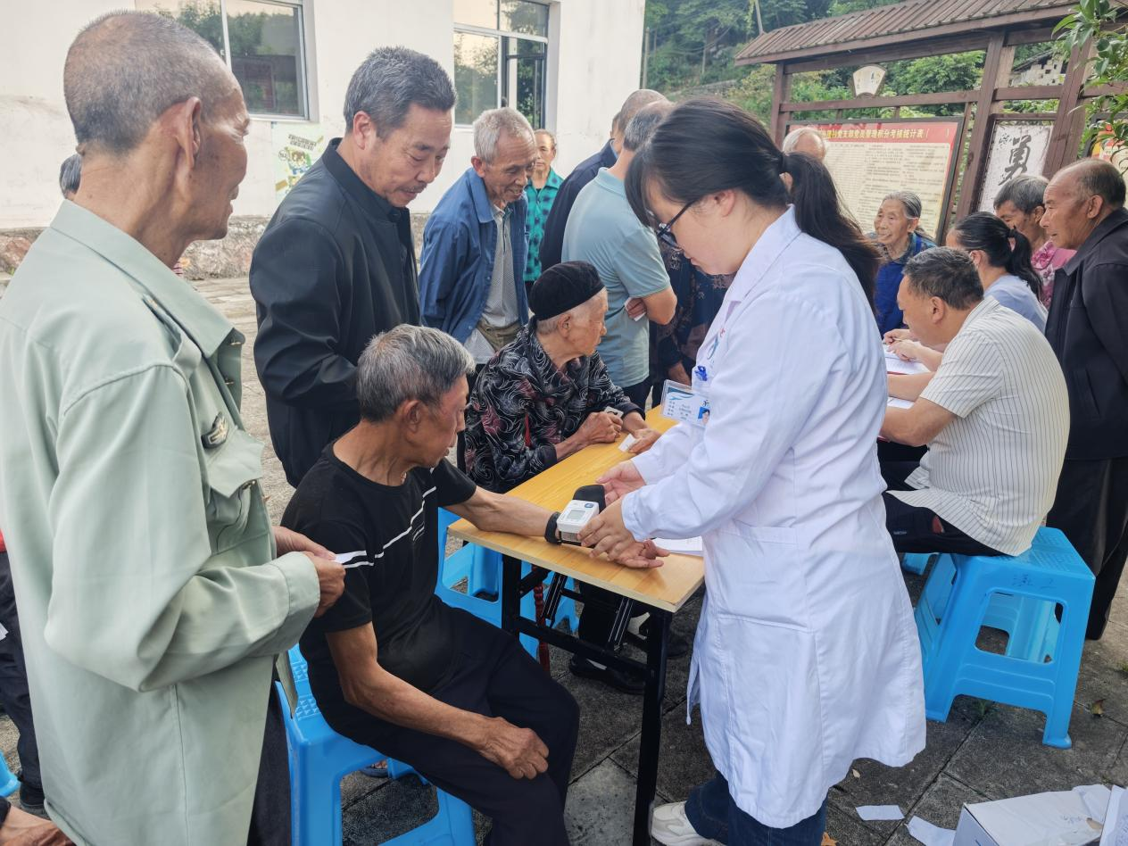 6月17日,温泉镇卫生院组织医疗团队走进兴隆村为60岁以上老年人开展免费健康体检,将优质医疗服务送到村民家门口,切实解决老年人就医不便的问题。