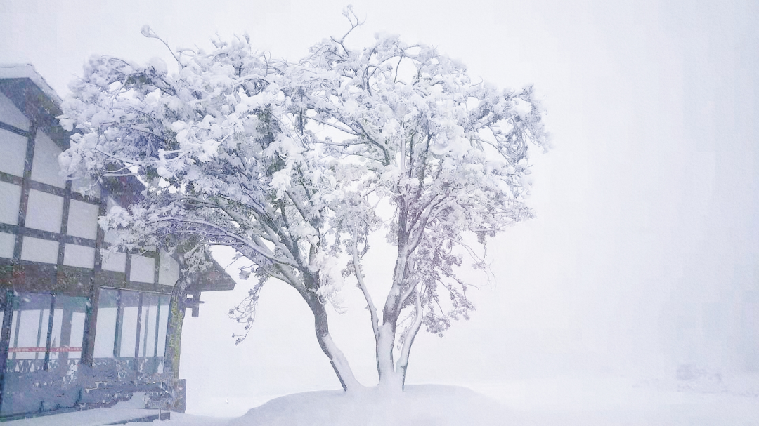 身处山林之间,只剩一片洁白,时间好像被凝结在这一刻,一眼望去,浪漫至极。