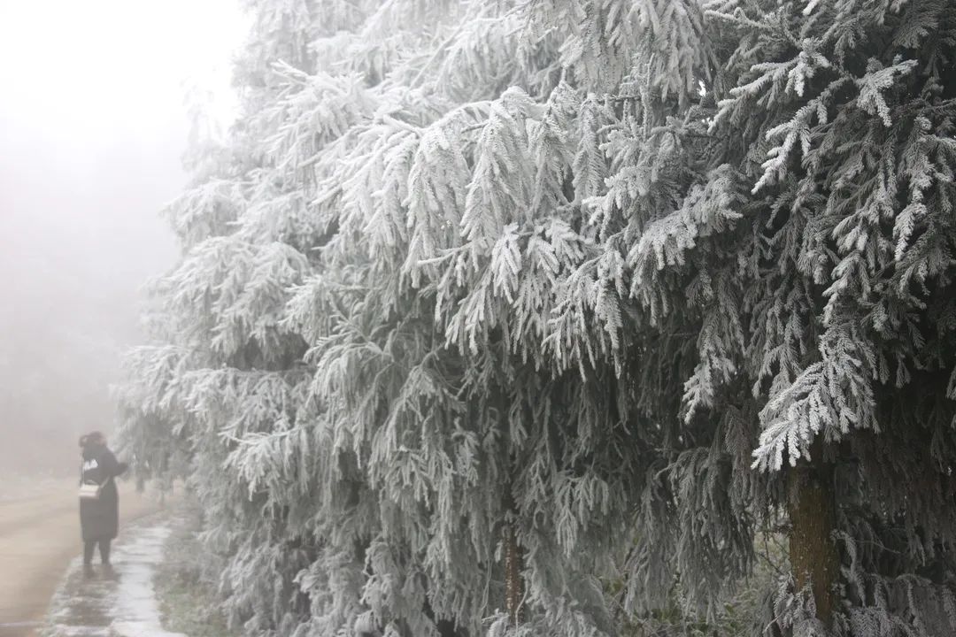 乌当云雾山,每年冬季便是看雾凇的好去处。这里海拔1600多米,是贵阳市第一高峰,每年冬季,洁白晶莹的霜花挂满枝头,是难得一见的冬日限定景观。