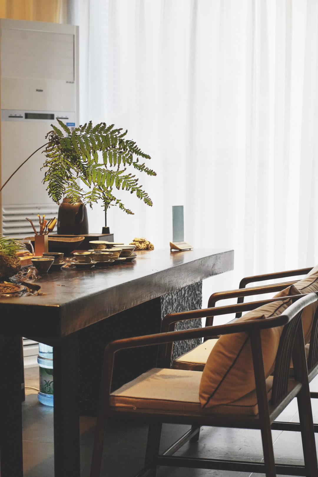 茶院还包含民宿部分,茶与民宿的舒缓调性,在“我们家”有了最恰当的融合,闹市里的一处清幽隐居地,拉长生活的反射弧。