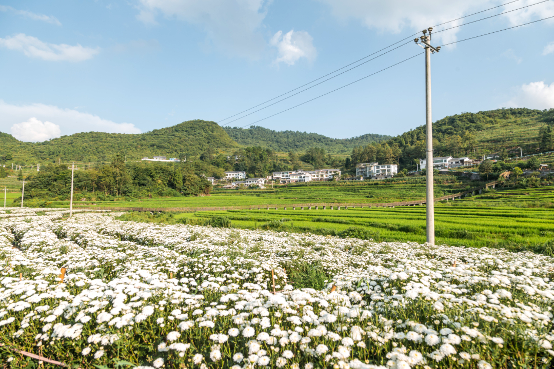 依山傍水、风光旖旎、稻谷飘香,这里有宜人的气候、秀丽的风景,在欣赏自然风光的同时,还可体验秋日里采摘的乐趣。秋收的季节,产业园的八月瓜、猕猴桃铆足了劲攒够甜蜜滋味;菊园里的菊花争奇斗艳、悄然绽放,美丽的花海吸引了大量游客前来观光。正可谓“采菊东篱下,悠然见南山”,在此处,一呼一吸间都是诗意享受。
