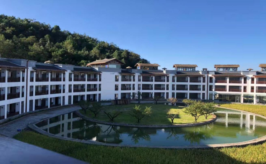 酒店呈环形状,周围绿树成荫、郁郁葱葱,空气清新、环境宜人。附带有餐饮、茶室、书吧等配套设施,酒店周边还可以体验温泉、丛林探险、卡丁车、乡村美景观光等。