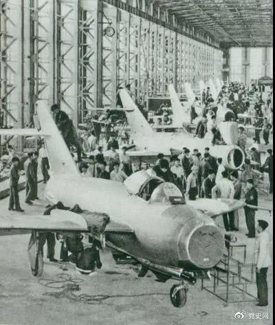 1956年7月19日,国产第一架喷气式战斗机在沈阳首次试飞成功,标志着中国具备了独立研制空军武器装备的能力。图为国产第一批喷气式飞机即将出厂。