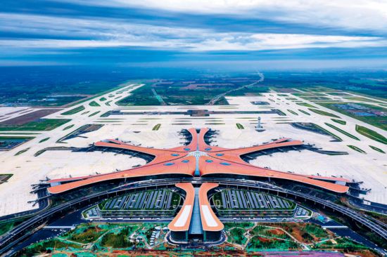党的十八大以来,以习近平同志为核心的党中央,提出一系列新理念新思想新战略,解决了许多长期想解决而没有解决的难题,办成了许多过去想办而没有办成的大事,党和国家事业取得历史性成就、发生历史性变革,中国特色社会主义进入了新时代。图为破土动工于2014年12月26日、航站楼竣工验收于2019年6月30日的北京大兴国际机场。大兴国际机场是首都重大标志性工程,其航站楼是目前全球最大规模的单体航站楼,以其独特的造型设计、精湛的施工工艺、便捷的交通组织、先进的技术应用,创造了许多世界之最。2019年9月25日上午,习近平总书记亲临机场出席投运仪式,并宣布机场正式投运。 马文晓/摄