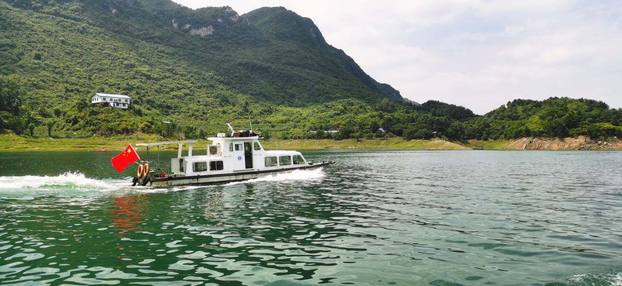 7月13日,记者跟随息烽县“十年禁渔”联合执法队,乘坐县海事执法艇由乌江顺江码头出发至流长大塘渡,开展乌江息烽水域“十年禁捕”执法巡查行动。一边听取执法人员介绍乌江保护案例,一边沉浸在“一江碧水向东流”的山水画卷里。