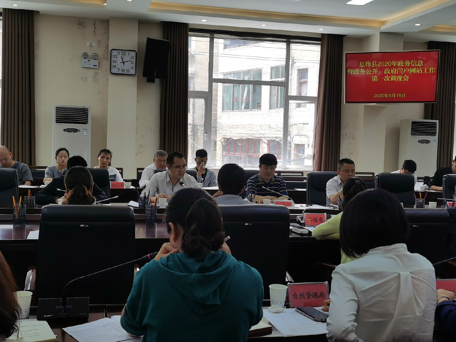 5月15日上午,县政府办公室召开了2020年政务信息暨政务公开、政府门户网站工作第一次调度会,全县38个部门、3家国有企业分管领导及具体负责同志参加了会议,通过以会代训的方式,通报了有关情况,对近期政务信息、政府网站工作提问题、找方法、给建议。