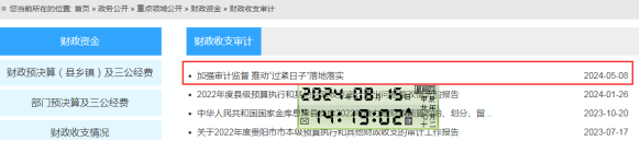 4.首页»政务公开»重点领域公开»财政资金»财政收支审计(责任单位:县财政局、县审计局)
