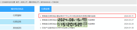 11.首页»政务公开»重点领域公开»城市综合执法»行政征收(责任单位:县住房和城乡建设局)