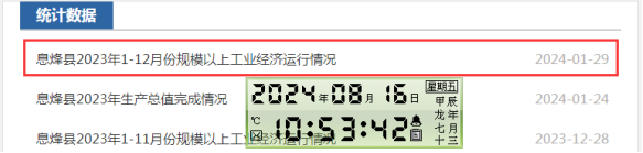 该栏目未及时更新息烽县2024年1—7月经济指标完成情况。建议县统计局按月收集规模以上经济指标完成情况对栏目进行更新维护。