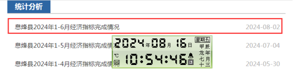该栏目未及时更新息烽县2024年1-7月经济指标完成情况,建议县统计局及时收集相关信息对该栏目进行更新维护。