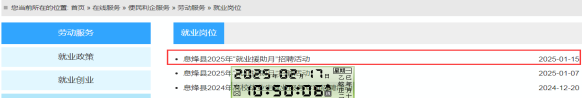 12.首页»在线服务»便民利企服务»劳动服务»就业岗位(责任单位:县人力资源和社会保障局)