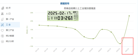该栏目未按照更新频率对栏目进行更新维护,超过1年未及时更新信息,未及时更新2024年息烽县规模以上工业增加值增速。