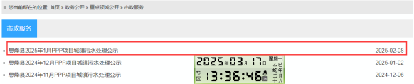 该栏目超过1个月未及时更新维护,未及时更新息烽县2025年2月PPP项目城镇污水处理公示,建议县水务局及时收集相信息对该栏目进行更新维护。