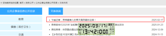 20.首页»政务公开»公共企事业信息公开目录»文体休闲(责任单位:县文体广电旅游局)