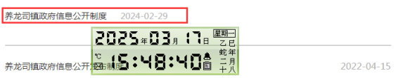 政策文件类栏目超过3个月未及时更新信息,建议养龙司镇及时收集相关信息对该栏目进行更新维护。