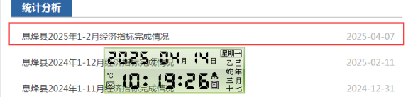 该栏目未及时更新息烽县2025年1—3月经济指标完成情况。建议县统计局按月收集规模以上经济指标完成情况对栏目进行更新维护。