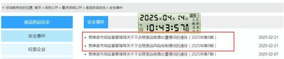 9.首页»政务公开»重点领域公开»食品药品安全»安全事件(责任单位:县市场监管局)
