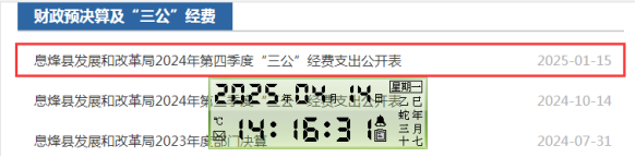 该栏目未及时更新息烽县发展和改革局2025年第一季度“三公”经费支出公开表,建议县发展改革局及时收集相关信息对栏目进行更新维护。