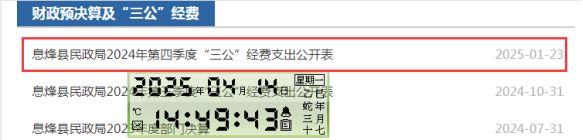 该栏目未及时更新息烽县民政局2025年第一季度“三公”经费支出公开表,建议县民政局及时收集相关信息对栏目进行更新维护。