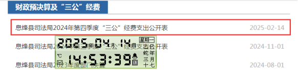 该栏目未及时更新息烽县司法局2025年第一季度“三公”经费支出公开表,建议县司法局及时收集相关信息对栏目进行更新维护。