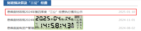 该栏目未及时更新息烽县财政局2025年第一季度“三公”经费执行情况公示,建议县财政局及时收集相关信息对栏目进行更新维护。