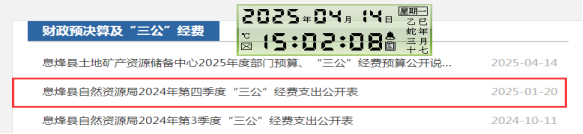 该栏目未及时更新息烽县自然资源局2025年第一季度“三公”经费支出公开表,建议县自然资源局及时收集相关信息对栏目进行更新维护。
