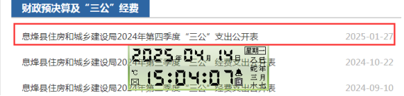该栏目未及时更新息烽县卫生健康局2025年第一季度“三公”经费支出公开表,建议县卫生健康局及时收集相关信息对栏目进行更新维护。