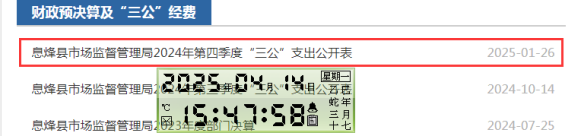 该栏目未及时更新息烽县市场监督管理局2025年第一季度“三公”支出公开表,建议县市场监管局及时收集相关信息对栏目进行更新维护。