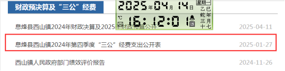 该栏目未及时更新息烽县西山镇2025年第一季度“三公”经费支出公开表,建议西山镇及时收集相关信息对栏目进行更新维护。