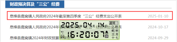 该栏目未及时更新息烽县鹿窝镇人民政府2025年截至第一季度“三公”经费支出公开表,建议鹿窝镇及时收集相关信息对栏目进行更新维护。