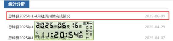 该栏目未及时更新息烽县2025年1—5月经济指标完成情况。建议县统计局按月收集规模以上经济指标完成情况对栏目进行更新维护。