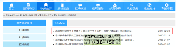4.首页»政务公开»重点领域公开»重大建设项目»招标投标(责任单位:县直各部门)