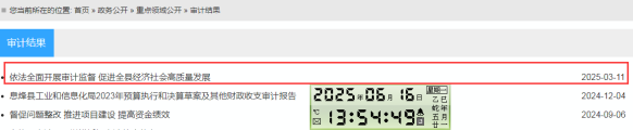 9.首页»政务公开»重点领域公开»审计结果(责任单位:县审计局)