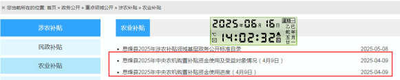 14.首页»政务公开»重点领域公开»涉农补贴»农业补贴(责任单位:县农业农村局)